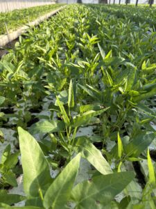 水と養液(液体の肥料)を使った水耕栽培で